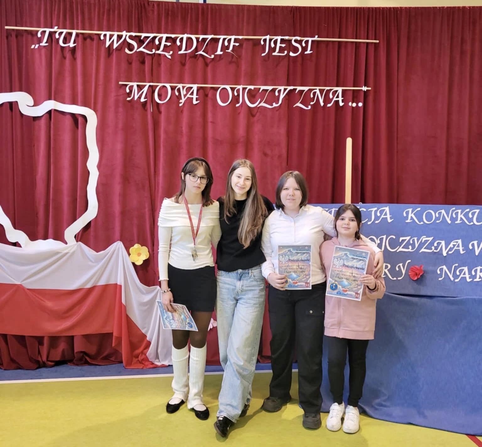 Konkurs plastyczny „Bóg – Honor – Ojczyzna „ Opublikowany 28/03/2025 przez admin 0 Uczennice naszej szkoły wzięły udział w konkursie plastycznym „Bóg – Honor – Ojczyzna „ pod hasłem przewodnim „Tu wszędzie jest moja Ojczyzna” Gratulujemy udziału i pomysłowości!