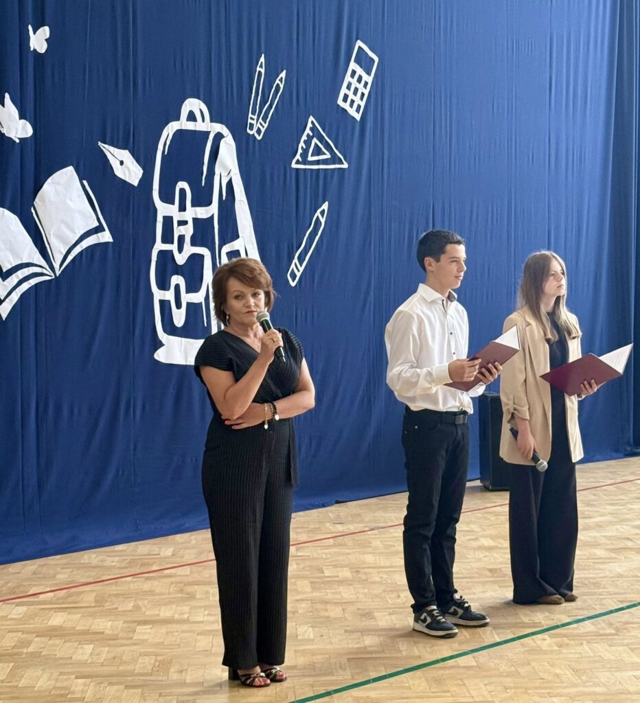 W poniedziałek 01.09.2025r. w naszej szkole odbyło się uroczyste rozpoczęcie roku szkolnego 2025/2026. Podczas apelu został odśpiewany hymn państwowy oraz hymn szkoły. Pan Dyrektor Dariusz Urbański oficjalnie przywitał wszystkich zgromadzonych, a w szczególności tych, którzy po raz pierwszy zawitali w szkolne mury. Pan Dyrektor przedstawił również nowo zatrudnionych nauczycieli naszej szkoły. Uczniowie szkoły pod kierunkiem nauczycieli przygotowali część artystyczną, podczas której pożegnali wakacje i przywitali nowy rok szkolny.